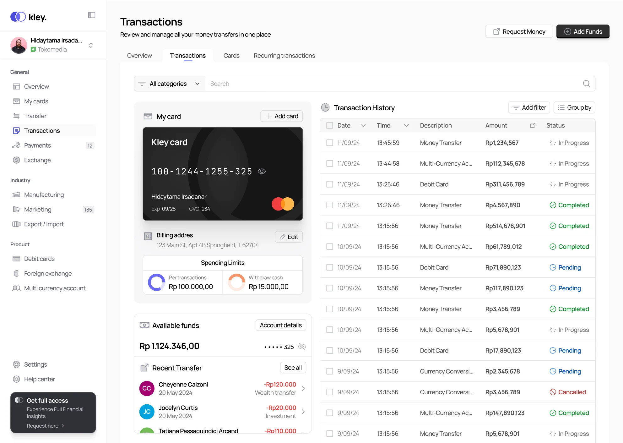 “Stay on top of your finances with real-time updates and clear visualizations. Kley’s dashboard offers instant access to spending data, budget status, and detailed financial reports, enabling you to make informed decisions quickly and effectively.”